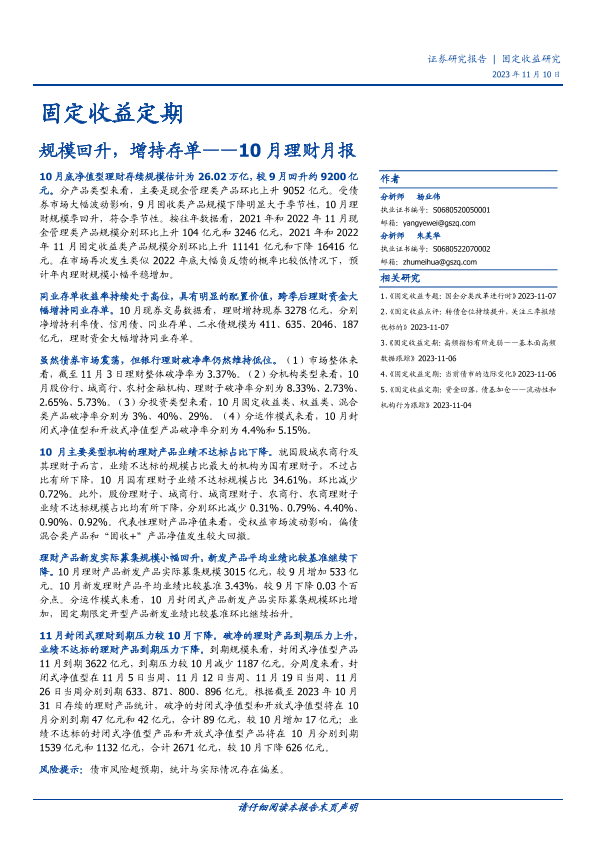 【国盛证券】【20231110】10月理财月报:规模回升,增持存单-13页