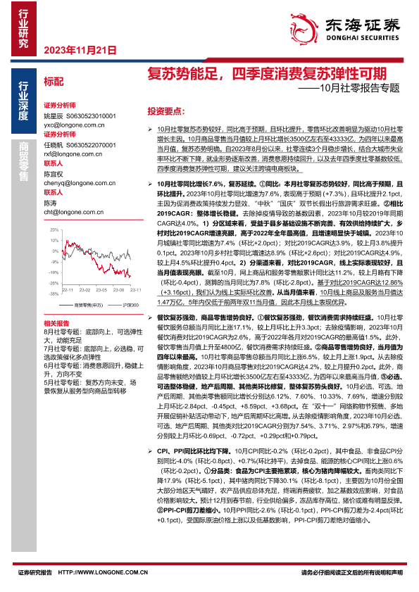 【东海证券】【20231121】10月社零报告专题:复苏势能足,四季度消费复苏弹性可期-25页