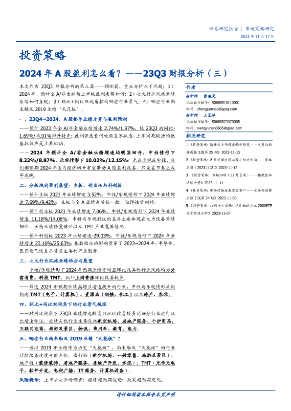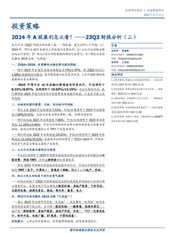 【国盛证券】【20231117】23Q3财报分析(三):2024年A股盈利怎么看?-12页