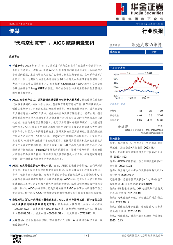 【华金证券】【20231112】传媒:“天与空创意节”:AIGC赋能创意营销-3页