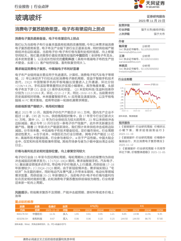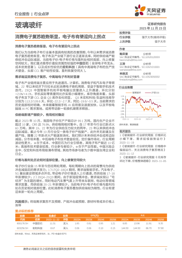 【天风证券】【20231123】玻璃玻纤:消费电子复苏趋势渐显,电子布有望迎向上拐点-13页