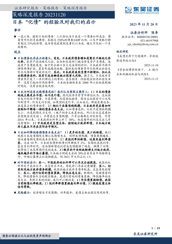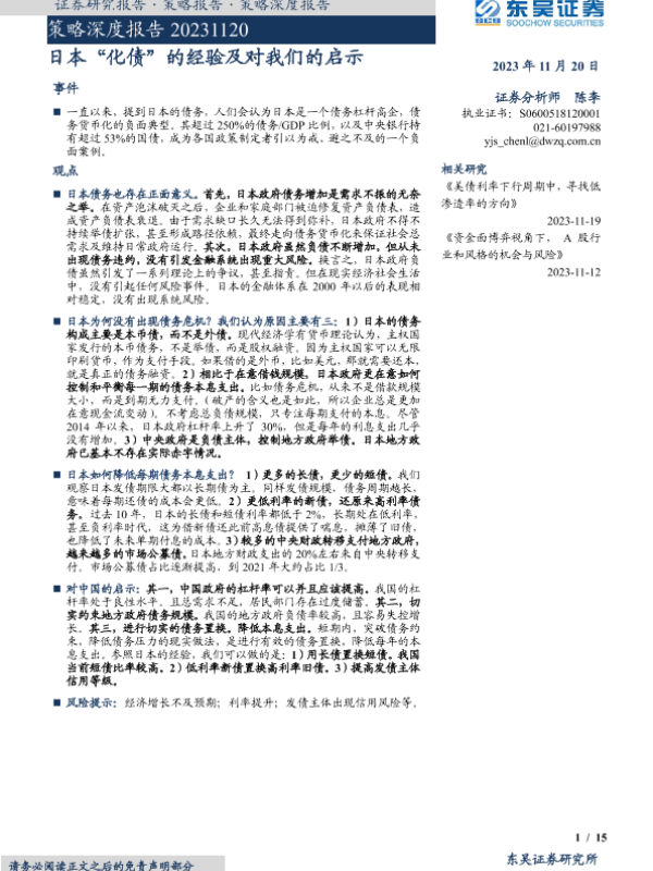 【东吴证券】【20231120】日本“化债”的经验及对我们的启示-15页