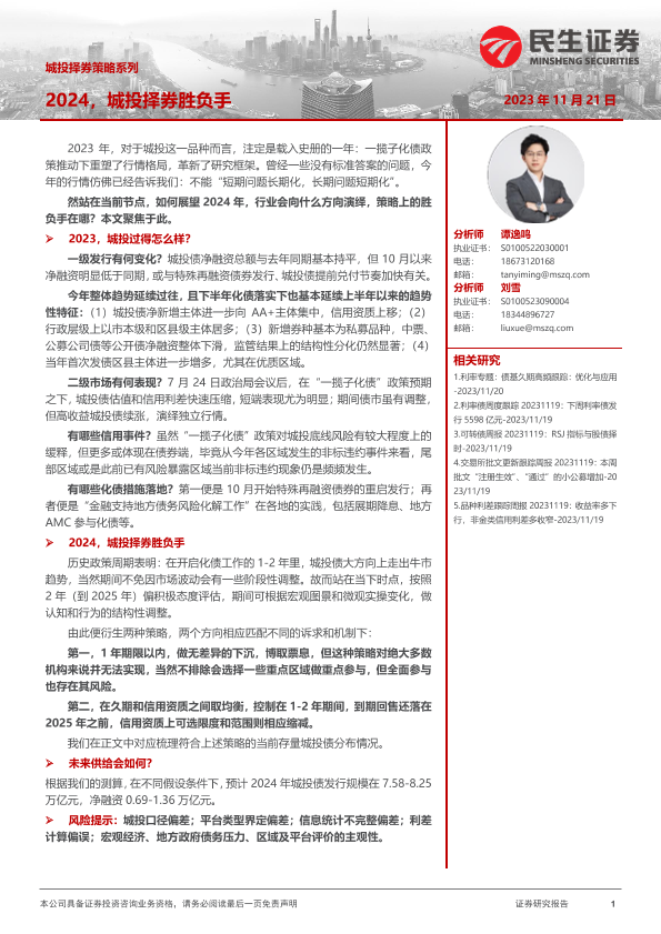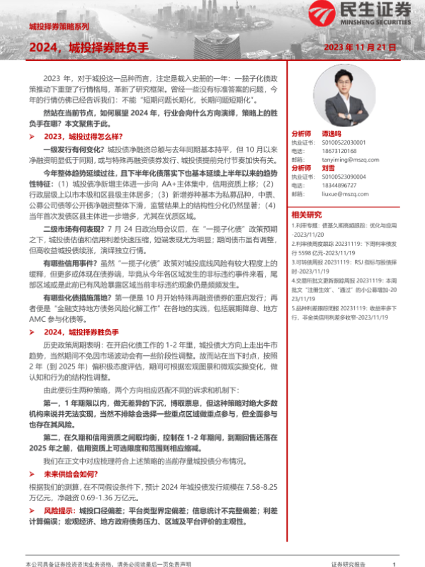 【民生证券】【20231121】城投择券策略系列:2024,城投择券胜负手-22页