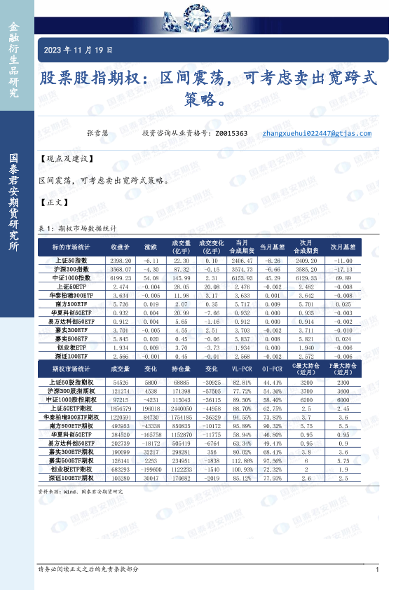 【国泰君安期货】【20231119】股票股指期权:区间震荡,可考虑卖出宽跨式策略。-15页