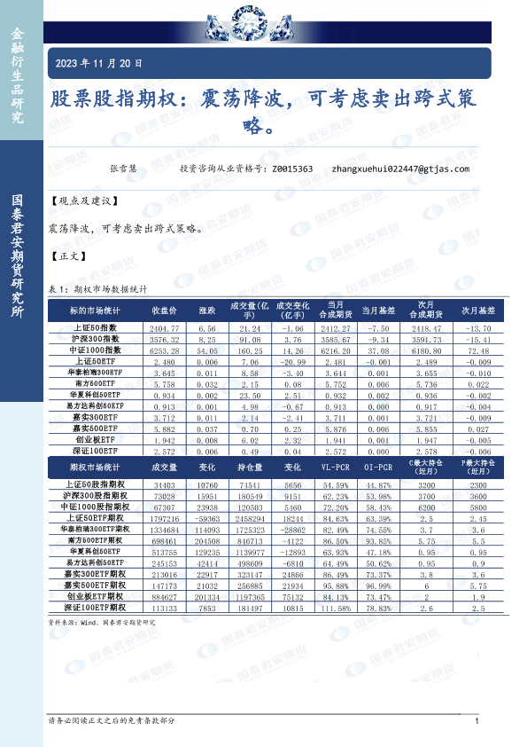 【国泰君安期货】【20231120】股票股指期权:震荡降波,可考虑卖出跨式策略。-15页
