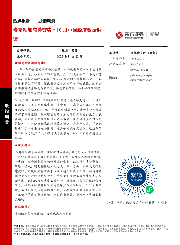 【东证期货】【20231116】股指期货热点报告:10月中国经济数据解读-修复动能有待夯实-10页