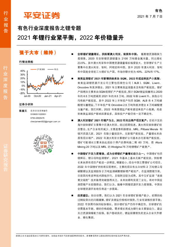 【平安证券】【20210707】有色行业深度报告之锂专题:2021年锂行业紧平衡,2022年价稳量升-32页