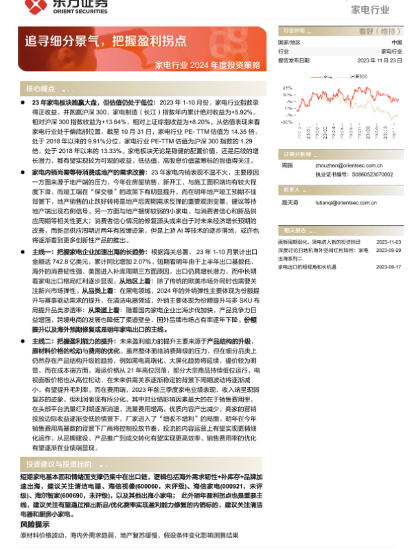【东方证券】【20231123】家电行业2024年度投资策略:追寻细分景气,把握盈利拐点-33页