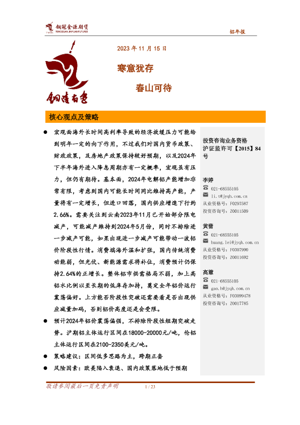 【金源期货】【20231115】铝年报:寒意犹存 春山可待-23页