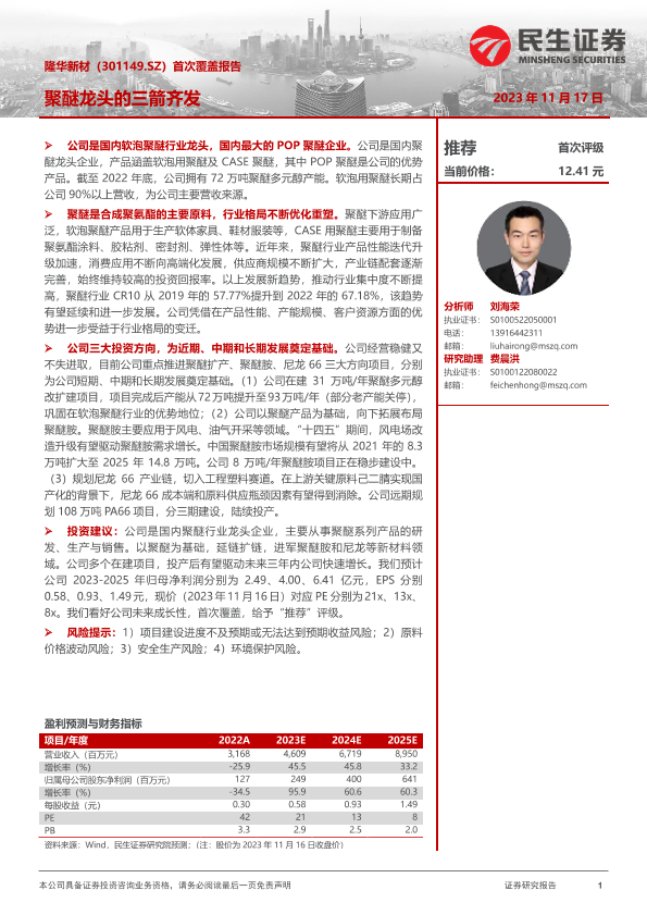 【民生证券】【20231117】隆华新材-301149.SZ-首次覆盖报告:聚醚龙头的三箭齐发-30页