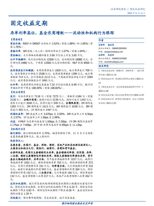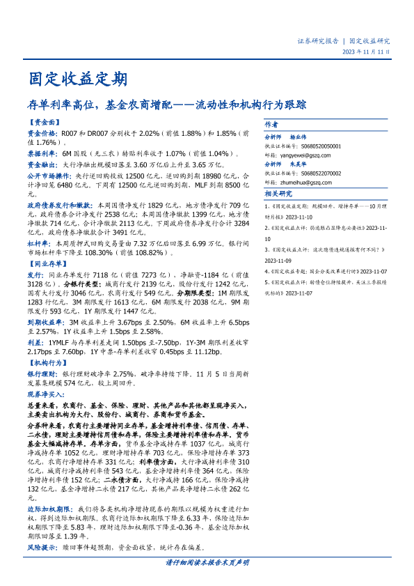 【国盛证券】【20231111】流动性和机构行为跟踪:存单利率高位,基金农商增配-11页