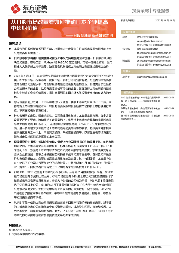 【东方证券】【20231124】日股创新高系列研究之四:从日股市场改革看如何推动日本企业提高中长期价值-14页