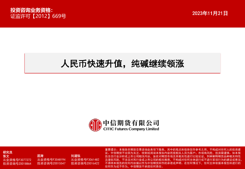【中信期货】【20231121】人民币快速升值,纯碱继续领涨-18页