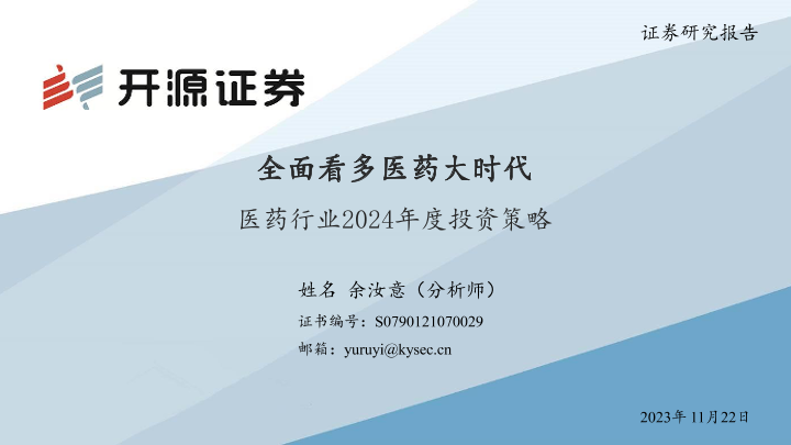 【开源证券】【20231122】医药行业2024年度投资策略:全面看多医药大时代-55页