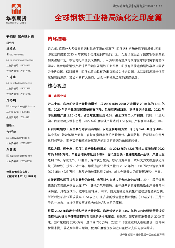 【华泰期货】【20231117】专题报告:全球钢铁工业格局演化之印度篇-24页