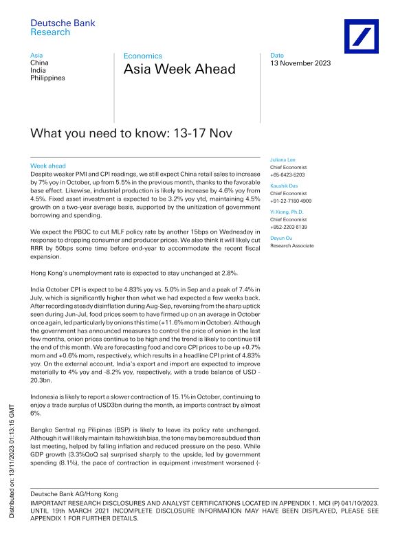 【Deutsche Bank】【20231113】Deutsche Bank-Asia Week Ahead What you need to know 13-17 Nov-10页