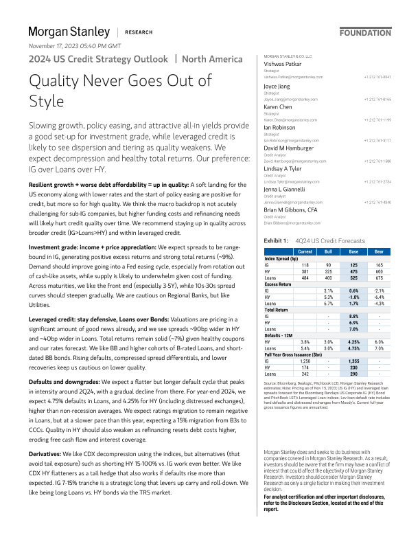 【Morgan Stanley】【2024】2024 US Credit Strategy Outlook Quality Never Goes Out of Style-62页