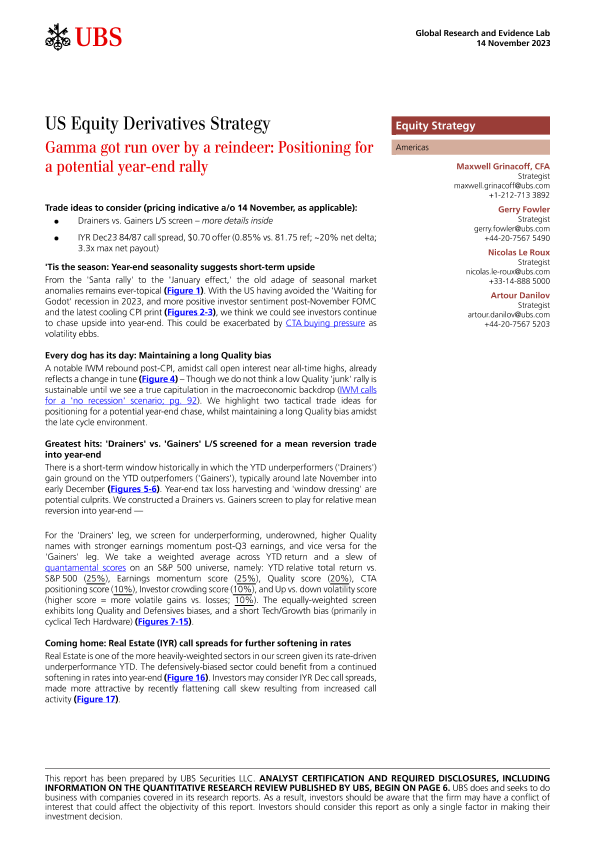 【UBS Securities LLC】【20231114】US Equity Derivatives Strategy Gamma got run over by a reindeer Positioning for a potential year-end rally-10页