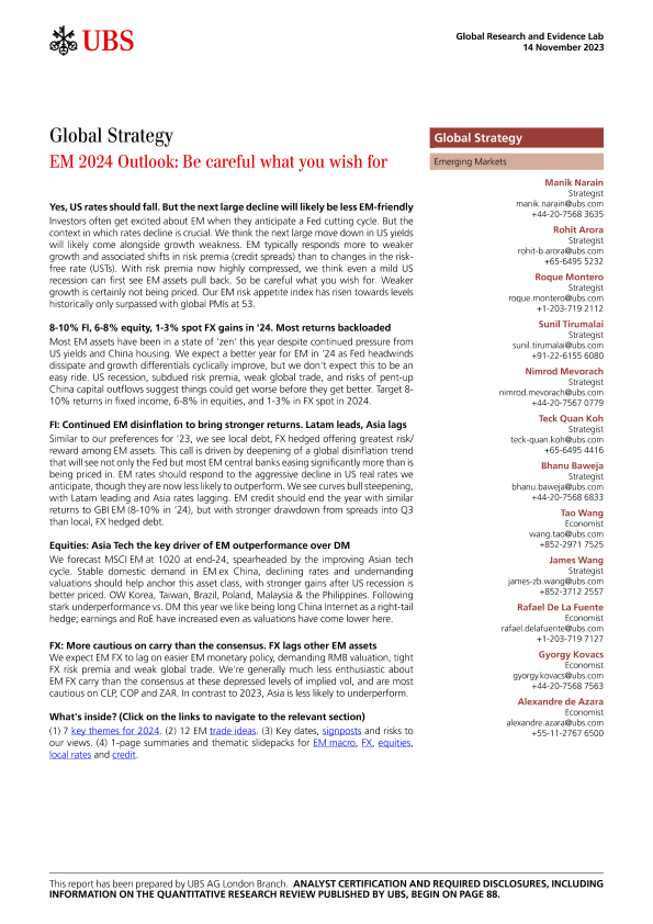 【UBS AG London Branch】【20231114】EM 2024 Outlook Be careful what you wish for-91页
