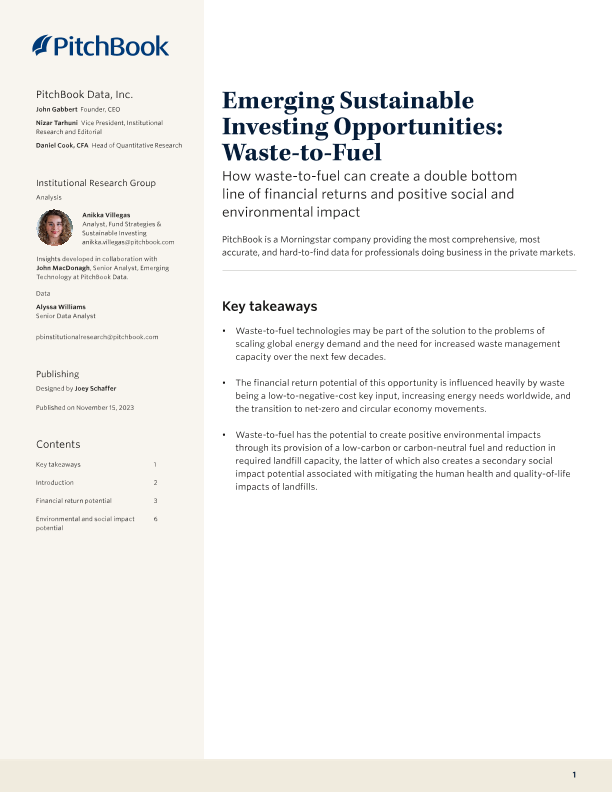 【PitchBook】【202311】新兴的可持续投资机会:从废物到燃料-8页