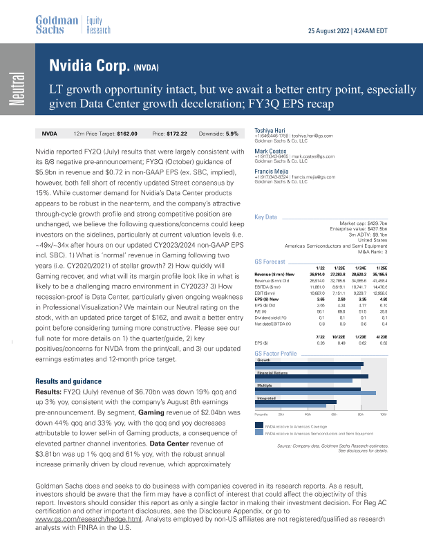 【Goldman Sachs】【20220825】NVIDIA Corporation Financial Analysis and Market Outlook-12页