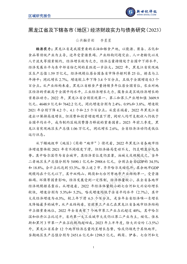 【新世纪评级】【2023】黑龙江省及下辖各市(地区)经济财政实力与债务研究(2023)-27页