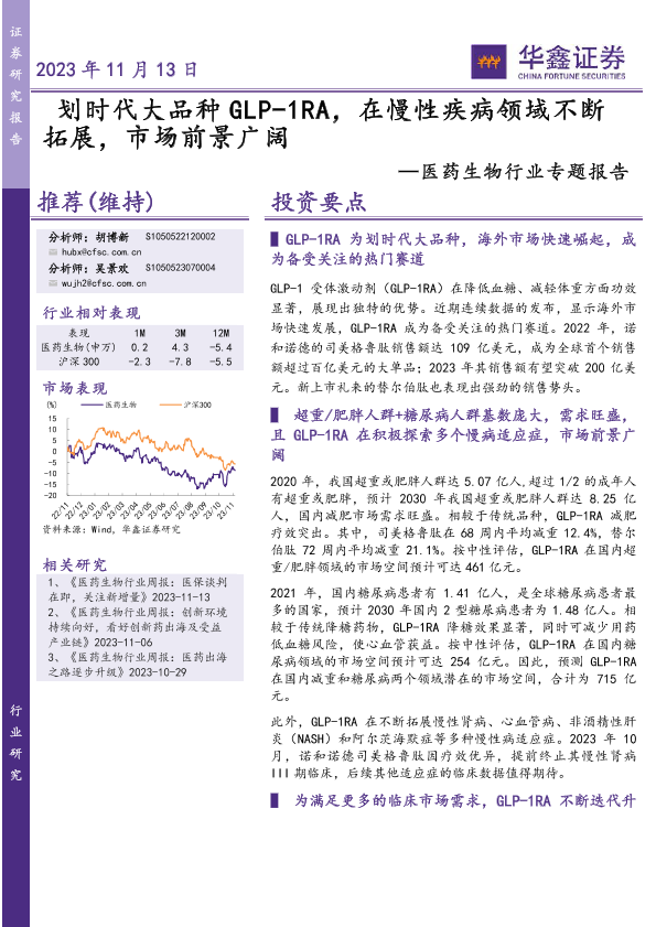 【华鑫证券】【20231113】医药生物行业专题报告: 划时代大品种GLP-1RA,在慢性疾病领域不断拓展,市场前景广阔-48页