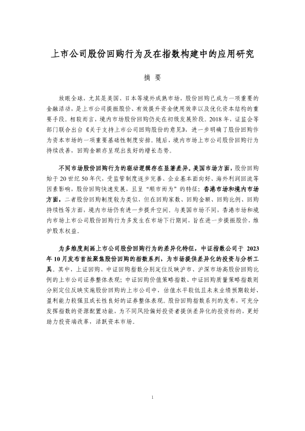 【中证指数】【202310】上市公司股份回购行为及在指数构建中的应用研究-24页