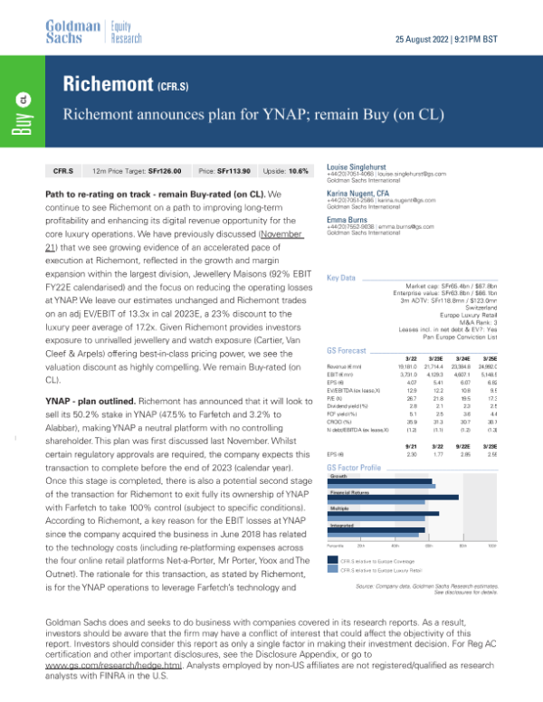 【Goldman Sachs】【20220825】Richemont宣布YNAP计划;维持买入评级-14页