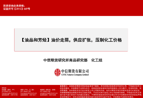 供应扩张 化工价格 期货市场 油价 行业分析