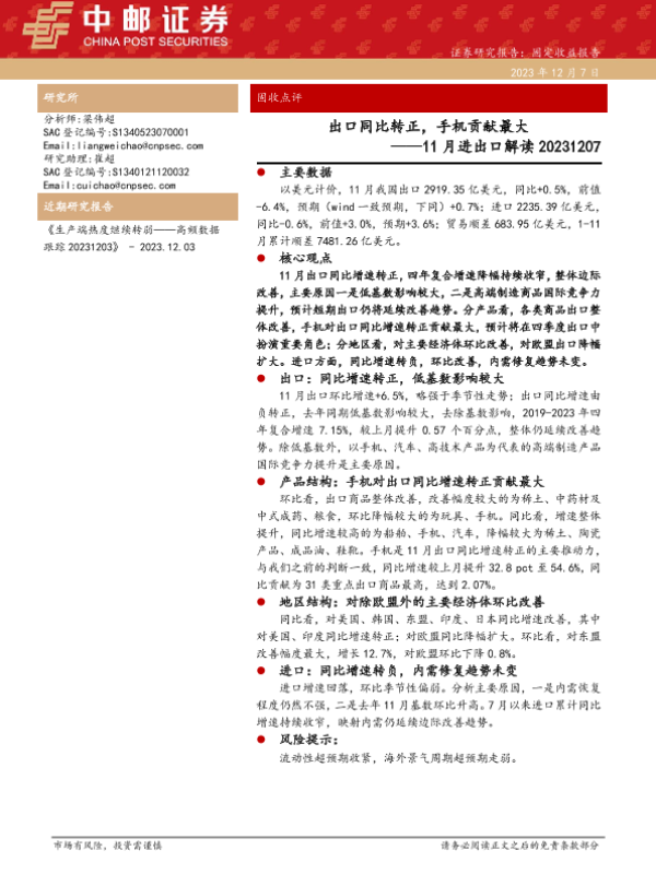 【中邮证券】【20231207】11月进出口解读:出口同比转正,手机贡献最大-12页