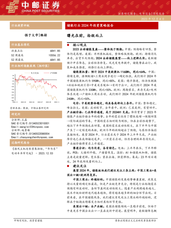 【中邮证券】【20231204】储能行业2024年投资策略报告:曙光在前,拾级而上-24页
