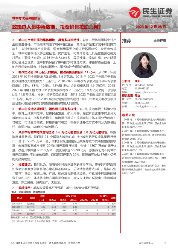 【民生证券】【20231208】城中村改造深度报告:政策进入集中释放期,投资销售拉动几何?-32页