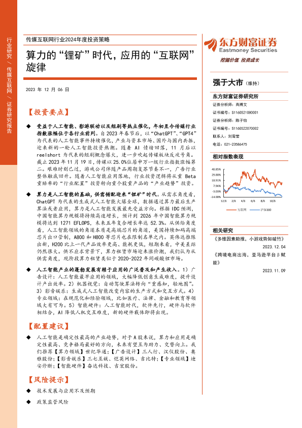 【东方财富证券】【20231206】传媒互联网行业2024年度投资策略:算力的“锂矿”时代,应用的“互联网”旋律-23页