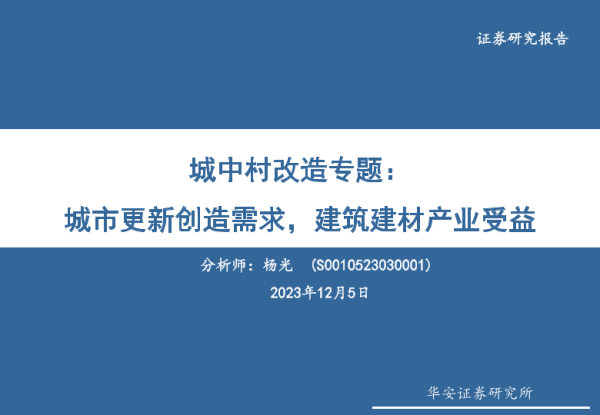 【华安证券】【20231205】城中村改造专题:城市更新创造需求,建筑建材产业受益-40页