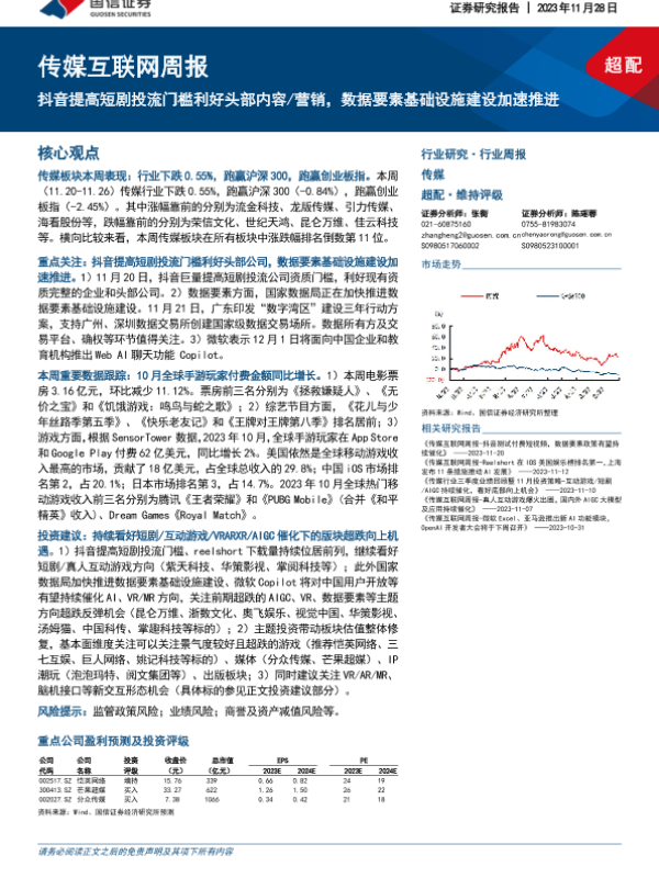【国信证券】【20231128】传媒互联网周报:抖音提高短剧投流门槛利好头部内容_营销,数据要素基础设施建设加速推进-16页