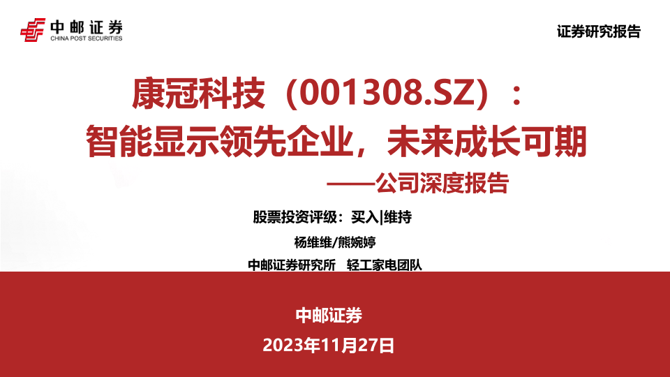 【中邮证券】【20231127】公司深度报告:智能显示领先企业,未来成长可期-37页