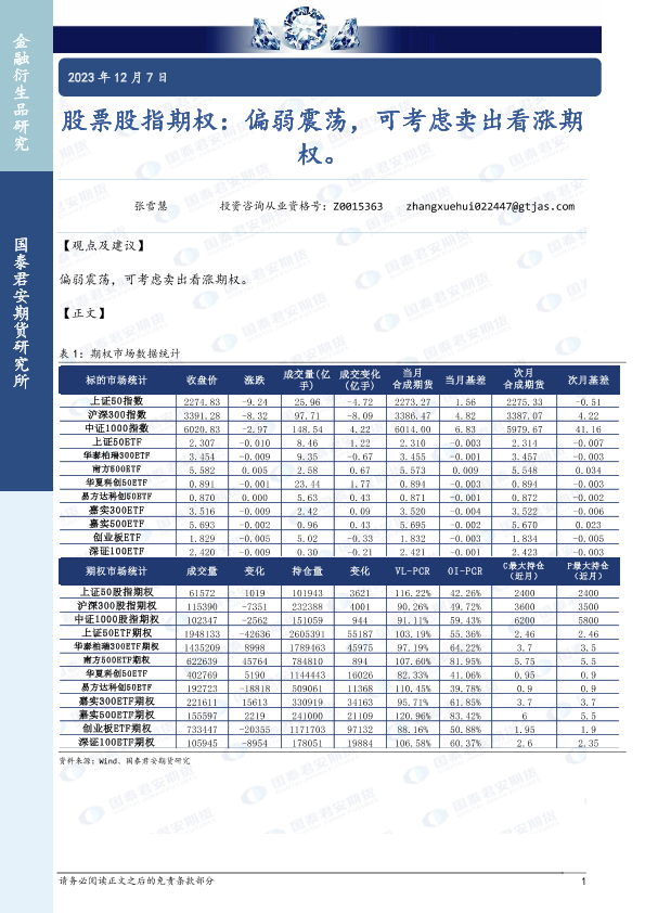 【国泰君安期货】【20231207】股票股指期权:偏弱震荡,可考虑卖出看涨期权。-15页