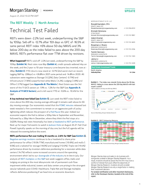 【Morgan Stanley】【2022】The REIT Weekly-Technical Test Failed-17页