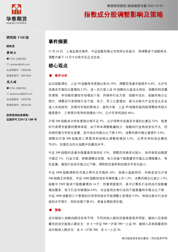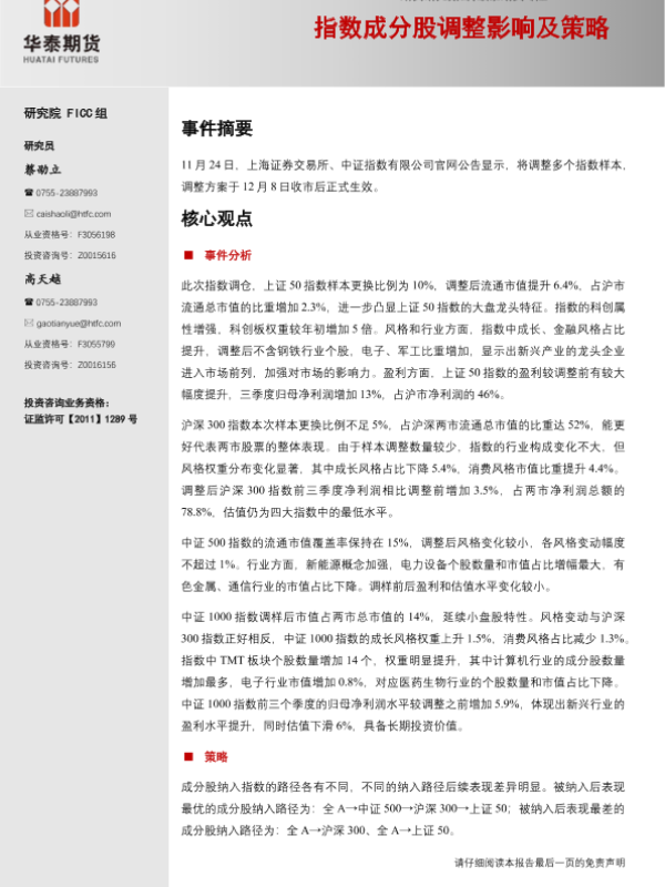 【华泰期货】【20231201】股指期货专题:指数成分股调整影响及策略-15页