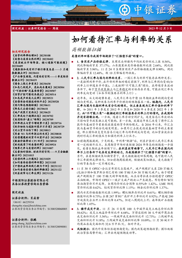 【中银证券】【20231203】固定收益:如何看待汇率与利率的关系-高频数据扫描-22页