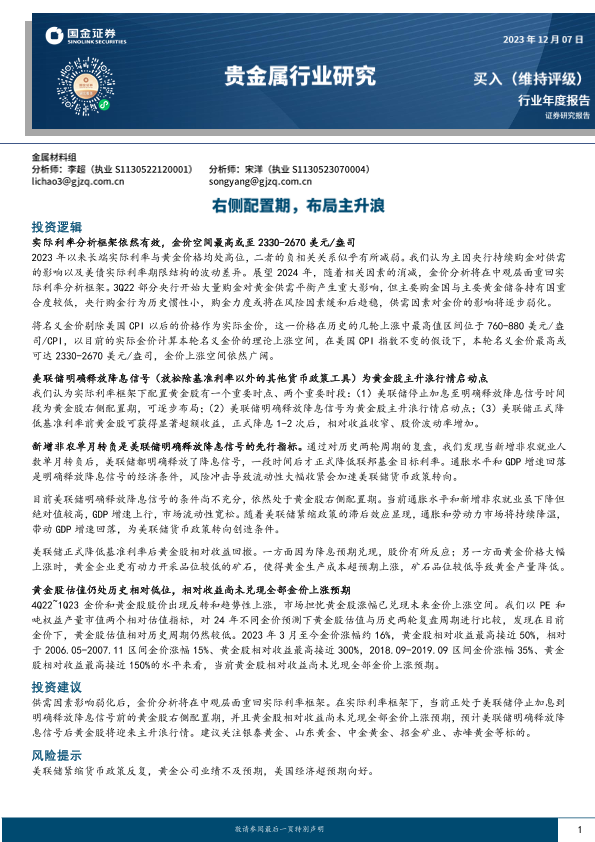 【国金证券】【20231207】贵金属行业研究:右侧配置期,布局主升浪-34页