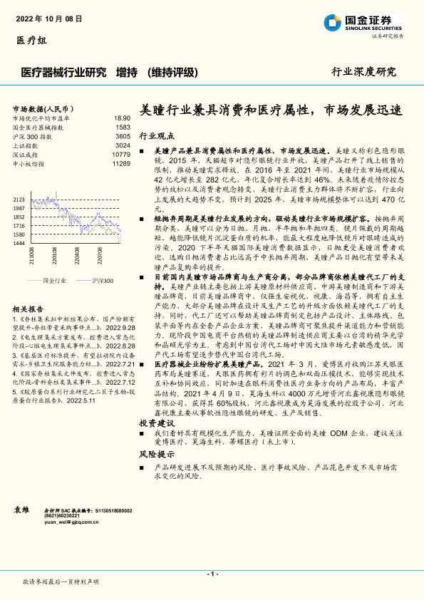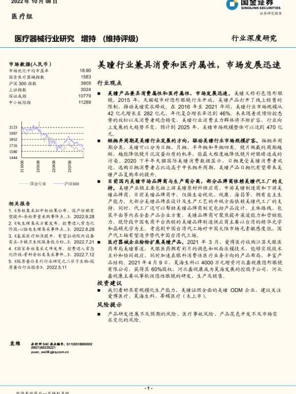 【国金证券】【20221008】国金证券-医疗器械行业研究:美瞳行业兼具消费和医疗属性,市场发展迅速-15页