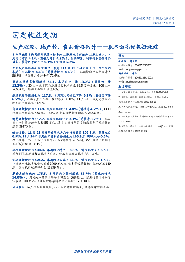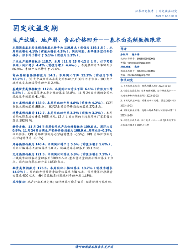 【国盛证券】【20231205】基本面高频数据跟踪:生产放缓、地产弱、食品价格回升-19页
