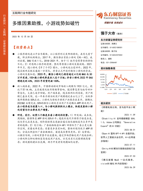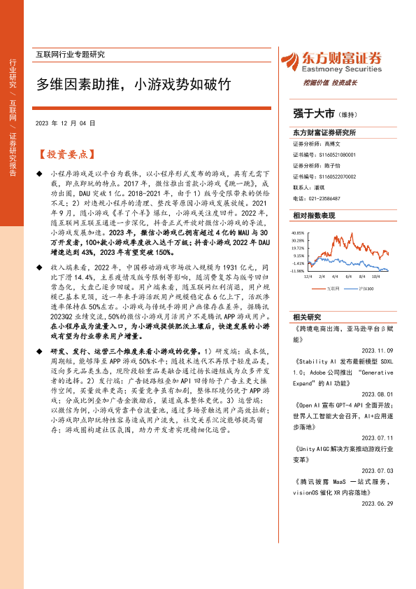 【东方财富证券】【20231204】互联网行业专题研究:多维因素助推,小游戏势如破竹-20页