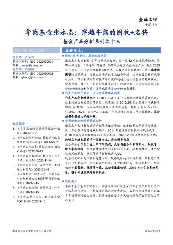 【华安证券】【20231205】华商基金张永志:穿越牛熊的固收+名将-20页