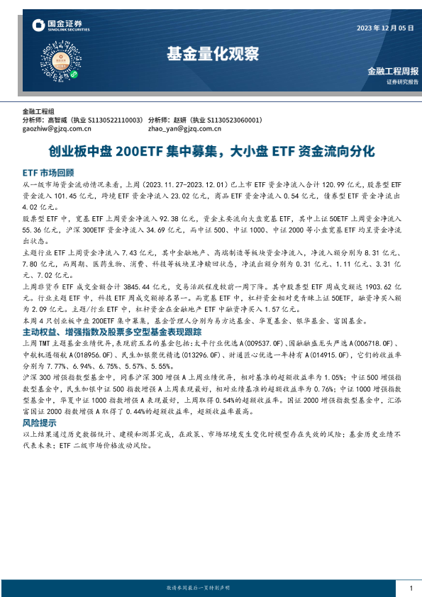 【国金证券】【20231205】基金量化观察:创业板中盘200ETF集中募集,大小盘ETF资金流向分化-12页