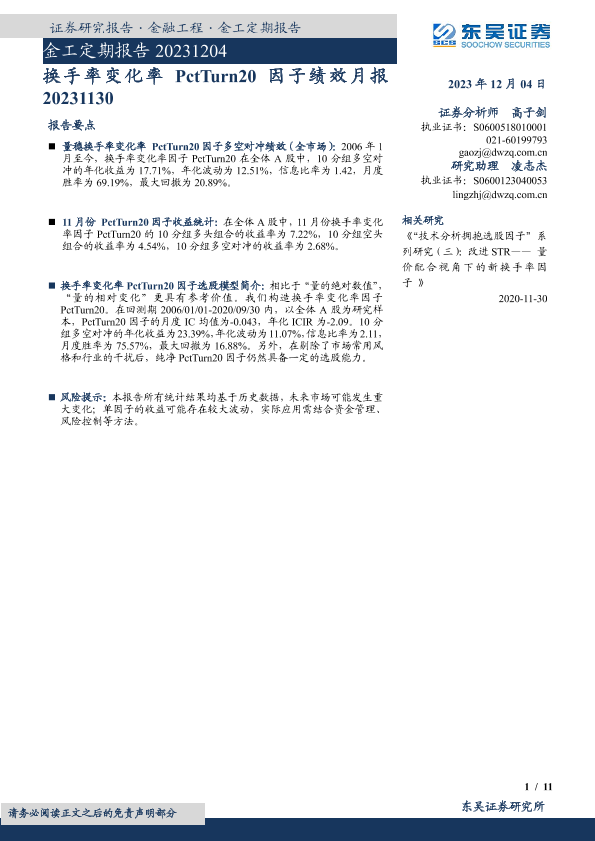 【东吴证券】【20231204】金工定期报告:换手率变化率PctTurn20因子绩效月报-11页