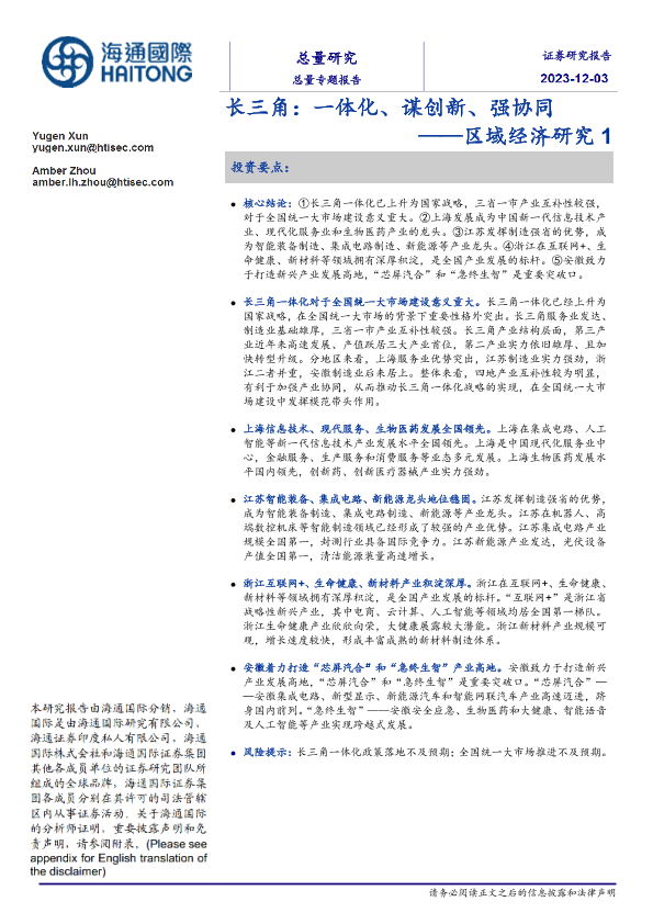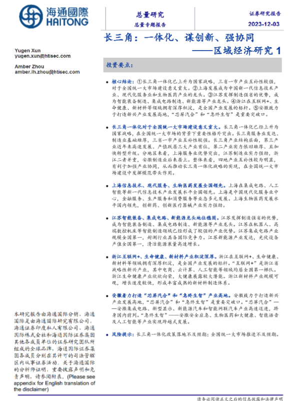 【海通国际】【20231203】长三角:一体化、谋创新、强协同-25页