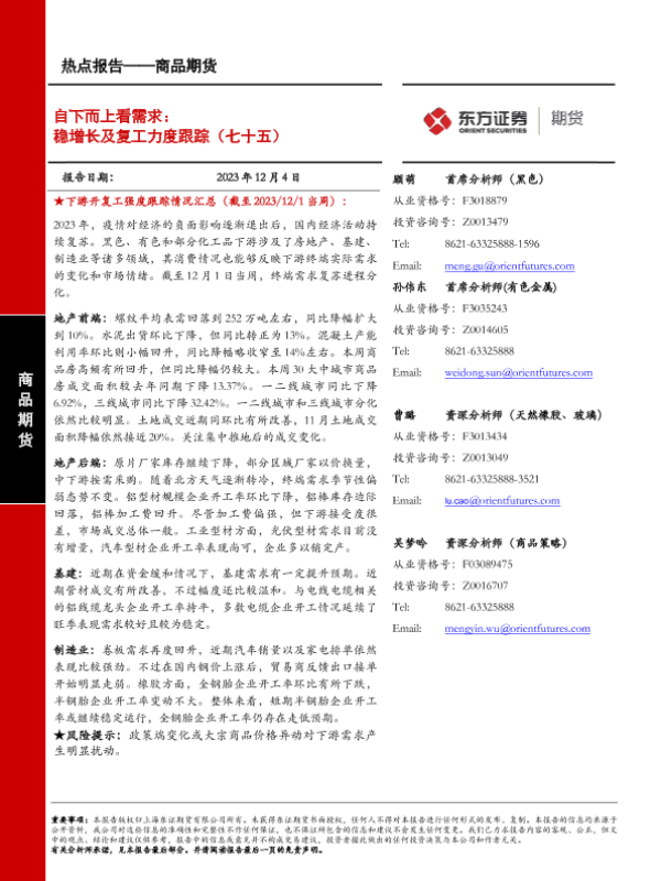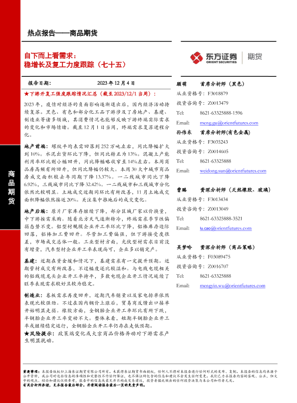 【东证期货】【20231204】商品期货热点报告:自下而上看需求:稳增长及复工力度跟踪(七十五)-13页